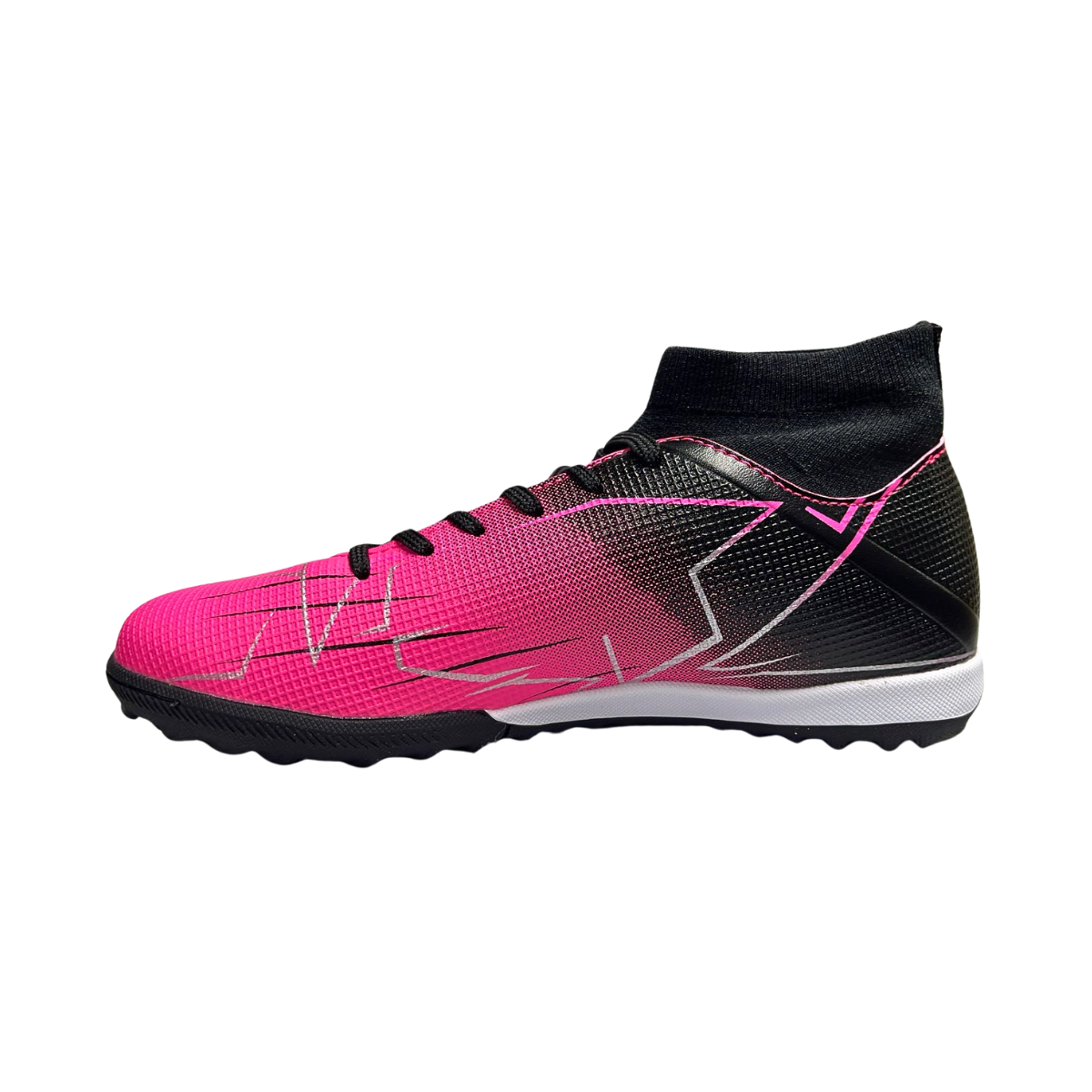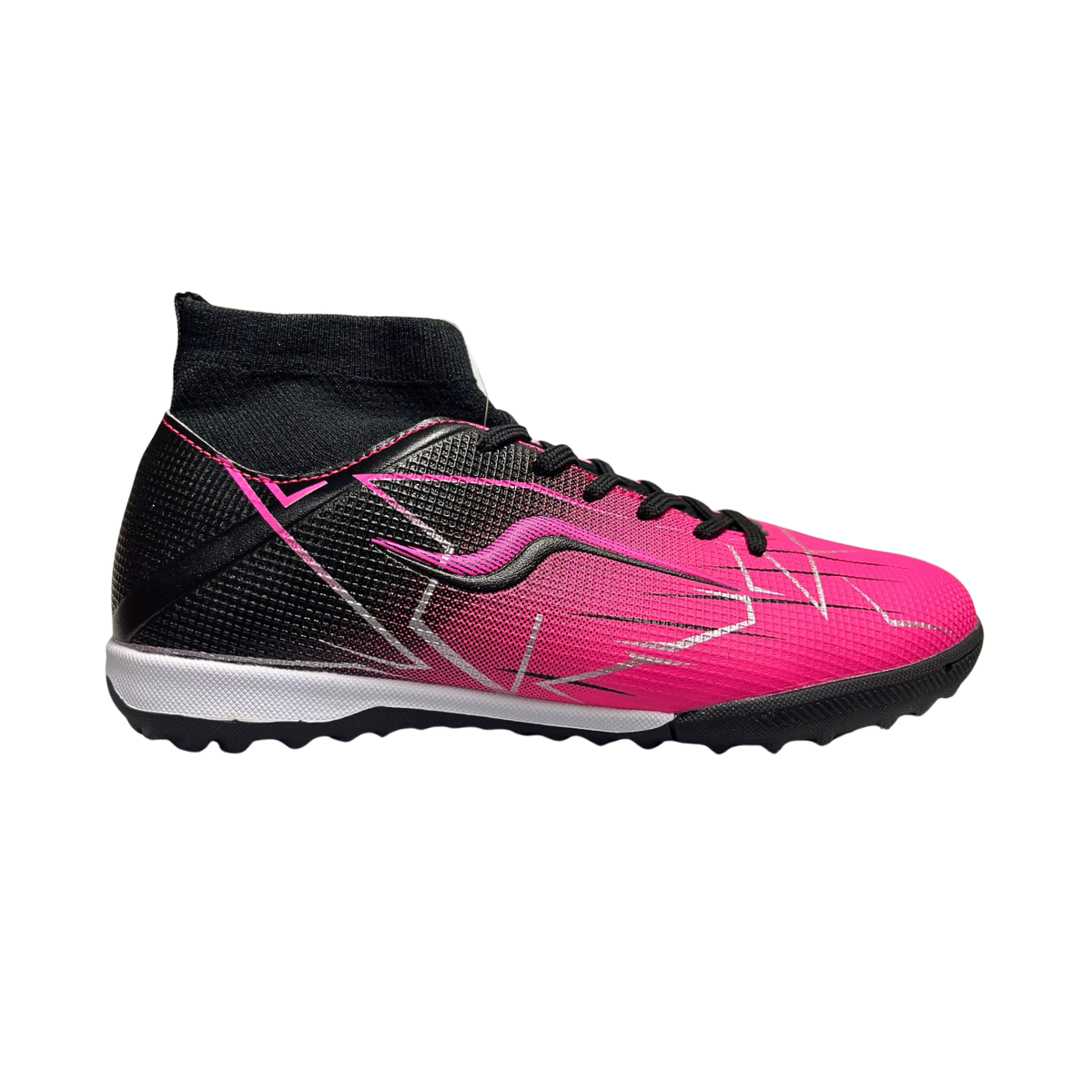 - Suela de goma con taches bajos, perfecta para tracción en canchas sintéticas o multiusos.